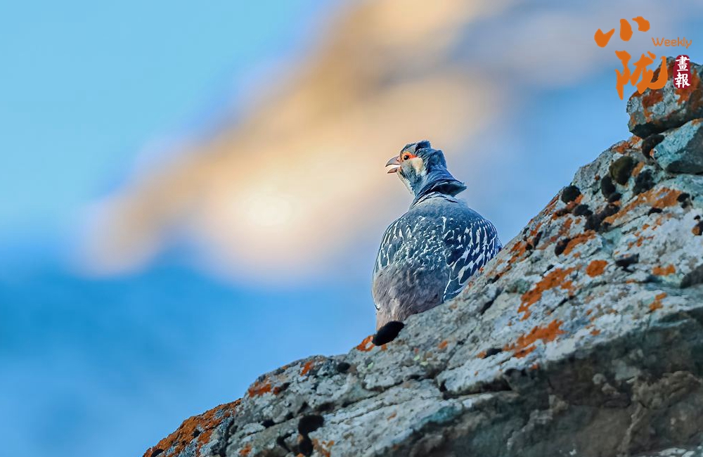 國家二級保護(hù)動(dòng)物藏雪雞,又名“淡腹雪雞”或“貝母雞”。雌雄羽毛相似。嘴為黃色,腳為紅色。前額有一桔色臘膜,眼周裸皮為黃色。背部暗棕色,密布不規(guī)則的細(xì)斑。翼羽暗褐色,具有白色羽緣,初級飛羽為灰褐色,尾羽為深棕色,密布黑褐色點(diǎn)斑。胸、腹均有淡色與黑色相間的黑紋。