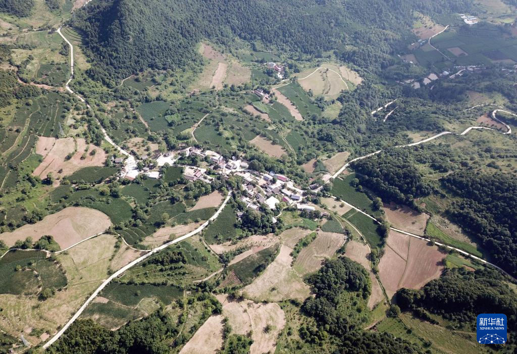 7月14日拍攝的青泥嶺腳下的青泥村(無(wú)人機(jī)照片)。新華社記者 陳斌 攝
