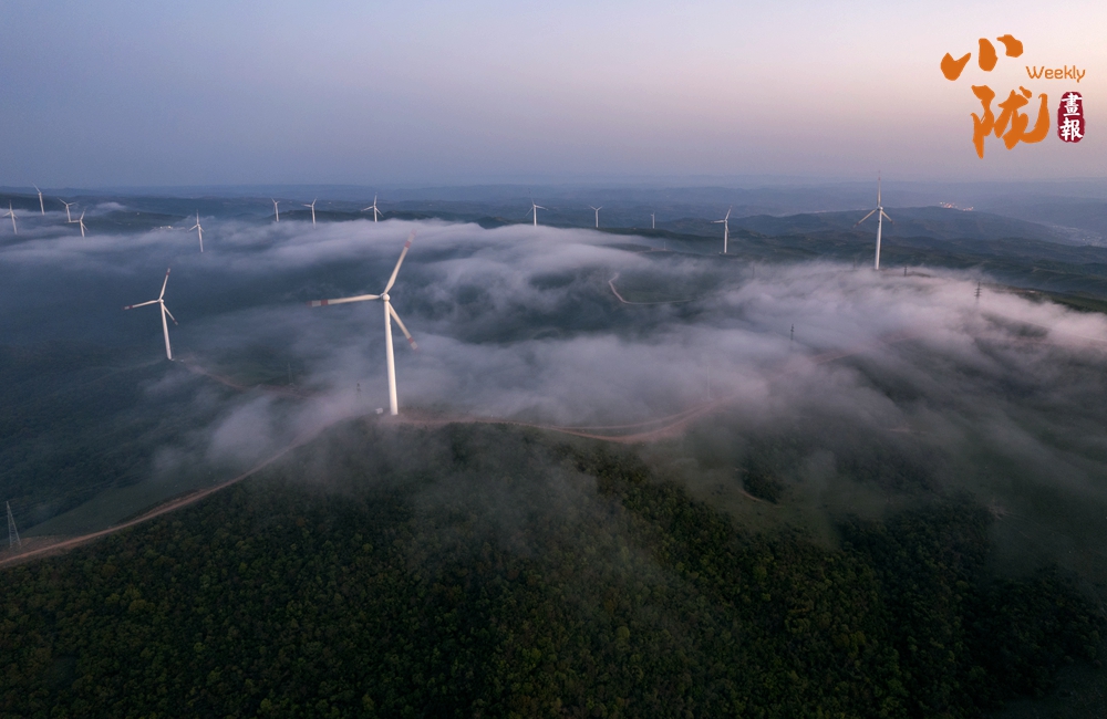 風(fēng)車在云海中旋轉(zhuǎn),仿佛觸手可及,又似遙不可及。云海翻騰,風(fēng)車旋轉(zhuǎn),似乎與天空進(jìn)行著一場無聲的交響樂。關(guān)山風(fēng)光大道,作為張家川縣境內(nèi)風(fēng)電新能源通道的拓建開發(fā)項(xiàng)目,已形成了一條綿延百里的關(guān)山觀光走廊。在這靜謐的山間,唯有風(fēng)車的轟鳴聲打破了沉寂,它與飄渺的云霧、巍峨的山嶺共同構(gòu)成了一幅絕美的畫卷。
