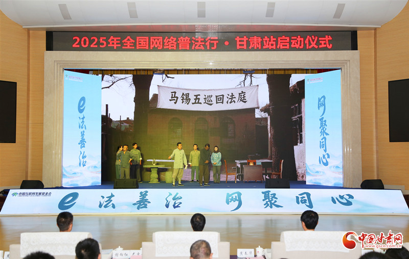 2025年“全國網(wǎng)絡(luò)普法行·甘肅站”活動啟動儀式上,原創(chuàng)網(wǎng)絡(luò)普法情景劇《法承初心》驚艷亮相,以獨特視角展現(xiàn)紅色法治文化與現(xiàn)代數(shù)字科技的交融碰撞,為觀眾帶來一場別開生面的法治盛宴。