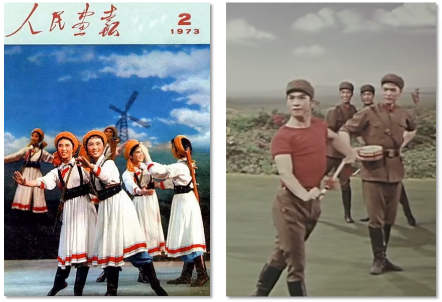 軍旅文藝作品在20世紀(jì)70年代迎來了創(chuàng)作高峰期,涌現(xiàn)了《草原女民兵》《戰(zhàn)馬嘶鳴》等一大批經(jīng)典作品,這與當(dāng)時特殊的歷史背景密切相關(guān)。“大約從70年代起,中國的舞蹈創(chuàng)作出現(xiàn)了一個稍稍活躍的狀態(tài)。為了歌頌新生活,也為了活躍舞臺,一些編導(dǎo)被先期‘解凍’,可以有限度地回到工作崗位上來。”人民軍隊(duì)與人民群眾需要通過文藝作品這一宣傳媒介,加強(qiáng)軍民一家親的情感聯(lián)結(jié),以此維護(hù)社會穩(wěn)定、軍民團(tuán)結(jié)。