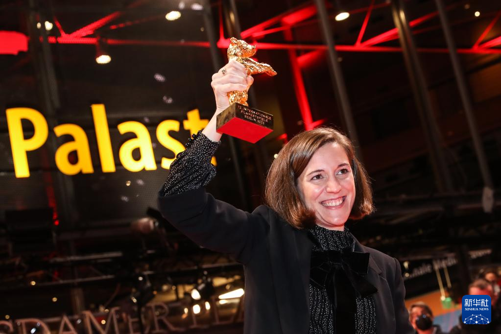 2月16日,在德國柏林,影片《阿爾卡拉斯》的導(dǎo)演卡拉·西蒙在頒獎儀式后亮相紅毯。該影片獲得最佳影片金熊獎。新華社記者 單宇琦 攝