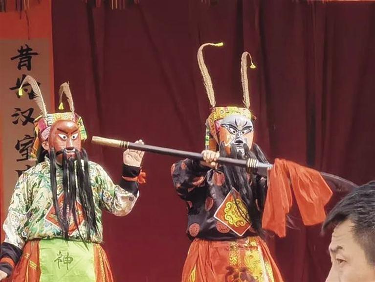 隴南市武都魚龍鄉(xiāng)陽山村高山戲又稱“演故事”“走過場”等,發(fā)源于隴南武都高山地區(qū),是從隴南當?shù)氐拿耖g祭祀活動和傳統(tǒng)社火中孕育、演變而來的戲曲劇種。高山戲演出程式多種多樣,語言生動活潑、幽默詼諧,2008年被列入第二批國家級非物質(zhì)文化遺產(chǎn)保護名錄。停止演出近20年后,在當?shù)匚幕鞴懿块T的大力支持下,2022年正月陽山村恢復了高山戲的演出。