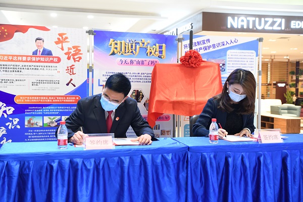 城關(guān)區(qū)法院與居然之家萬佳天水路店,就設(shè)立“知識產(chǎn)權(quán)司法保 護示范基地”及日常工作的詳細內(nèi)容簽訂備忘錄。記者 李洋 攝