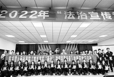 東鄉(xiāng)縣檢察院和民族中學(xué)共同舉辦“攜手落實(shí)‘兩法’共護(hù)祖國(guó)未來(lái)”檢察開(kāi)放日宣講活動(dòng)(2022年5月31日拍攝)?!      |鄉(xiāng)縣檢察院供圖