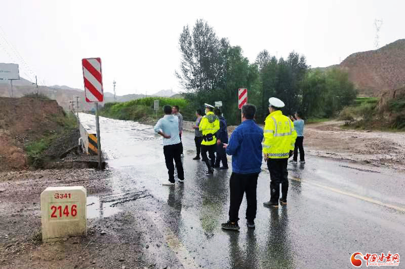 8月4日,永登縣公安局交警大隊河橋中隊接到縣局指揮中心強對流天氣預(yù)警信息后,提前趕往G341線易發(fā)山洪路段開展交通疏導(dǎo),所在區(qū)域35人、15輛車安全撤離僅3分鐘后,G341線2174公里處發(fā)生路面坍塌,洪水漫過堤壩,道路被嚴重沖毀。