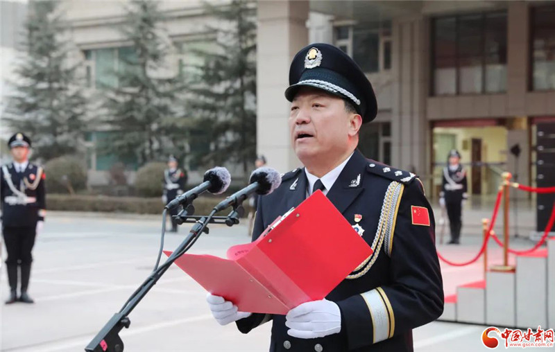中國(guó)甘肅網(wǎng)1月10日訊(本網(wǎng)記者 程?。?月10日,蘭州市公安局舉行升警旗儀式,熱烈慶祝第三個(gè)中國(guó)人民警察節(jié),進(jìn)一步激勵(lì)全警深入學(xué)習(xí)宣傳貫徹黨的二十大精神,牢記初心使命、堅(jiān)定從警信念,匯聚向高而攀、向新而生、向遠(yuǎn)而行的磅礴力量,推動(dòng)新時(shí)代蘭州公安高質(zhì)量發(fā)展,為全面建設(shè)社會(huì)主義現(xiàn)代化國(guó)家、全面推進(jìn)中華民族偉大復(fù)興保駕護(hù)航。省公安廳副廳長(zhǎng)、蘭州市副市長(zhǎng)、市公安局黨委書記、局長(zhǎng)王立朝出席并講話。