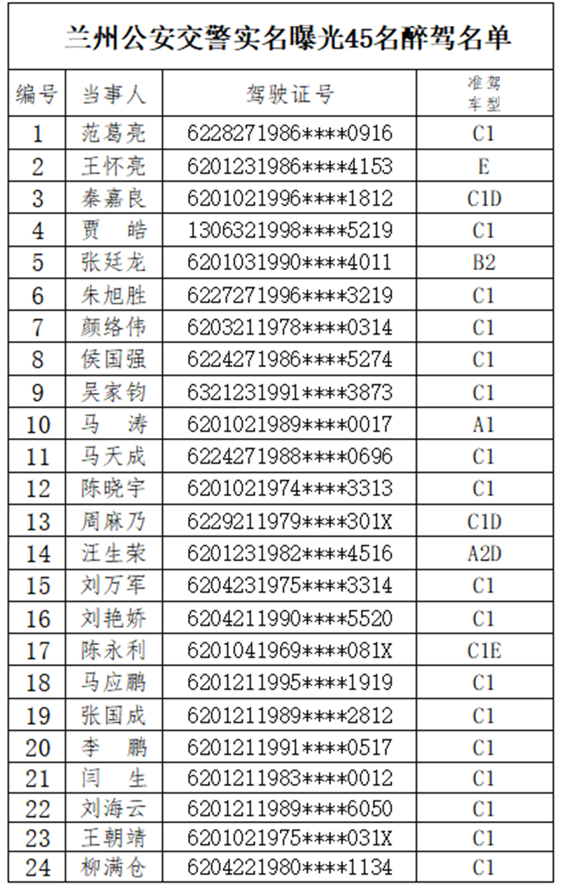 原標(biāo)題:蘭州公安實(shí)名曝光45名醉駕人員