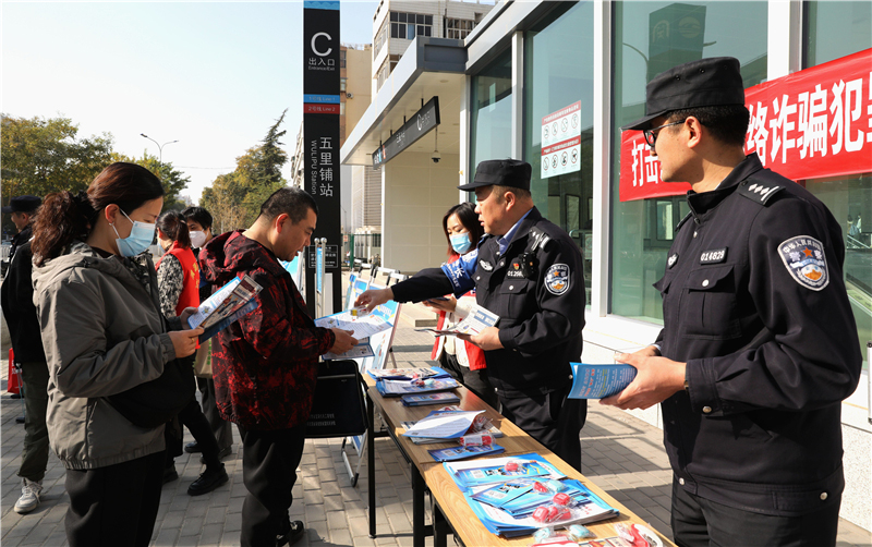 宣傳活動(dòng)中,軌道派出所所長(zhǎng)充分利用軌道交通客流量大的陣地優(yōu)勢(shì),與屬地公安派出所所長(zhǎng)、街道社區(qū)主任、軌道站點(diǎn)站長(zhǎng)“四長(zhǎng)”聯(lián)動(dòng),夯實(shí)地上地下一體化,在地鐵車廂內(nèi)、站臺(tái)、車站出入口等人員密集區(qū)開展防范電信網(wǎng)絡(luò)詐騙常識(shí)宣傳,講解身邊典型案例,發(fā)放反詐宣傳資料及宣傳品,重點(diǎn)介紹近期多發(fā)的“蟹卡”類詐騙、“蹭熱點(diǎn)”類詐騙,指導(dǎo)群眾正確預(yù)防電信詐騙,講授受騙后應(yīng)當(dāng)及時(shí)撥打“96110”反詐專線等補(bǔ)救措施。