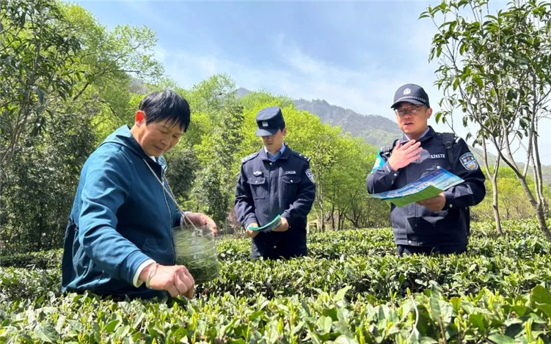 清明節(jié)后,隴南市康縣的茶樹鮮嫩的新芽迎風而立,茶農(nóng)們穿行在茶樹間熟練地采摘嫩芽,同樣忙碌不歇的還有轄區(qū)派出所的民警們,他們上茶山、進茶園、問需求、解糾紛,成為春茶豐收畫卷中的一抹別樣的“警”色。