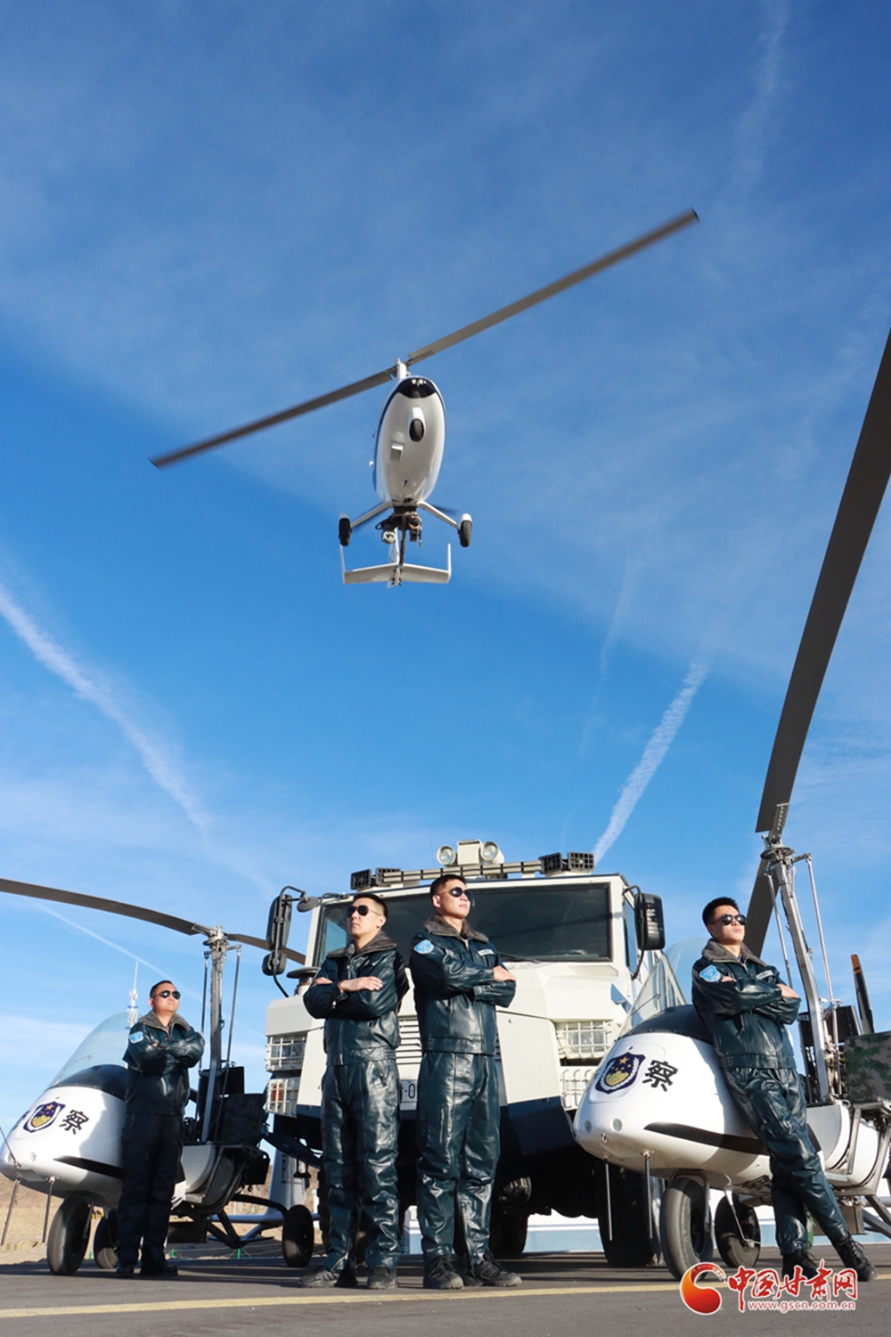 甘肅出入境邊防檢查總站酒泉邊境管理支隊利用旋翼機(jī)在馬鬃山邊境管理區(qū)戈壁荒漠地區(qū)開展空中巡防任務(wù)。該隊的成立成為甘肅出入境邊防檢查總站“科技興警、科技管邊”的一張亮麗名片,標(biāo)志著“智慧邊境、數(shù)字邊境”平安邊境體系的初步形成。“飛天警隊”是全國移民管理系統(tǒng)首支旋翼機(jī)隊成立于2020年7月,由9名民警組成,平均年齡不超過30歲。