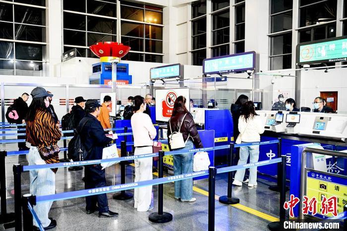 2024年11月7日,蘭州邊檢站執(zhí)勤民警驗放國際航班旅客。王翔宇 攝