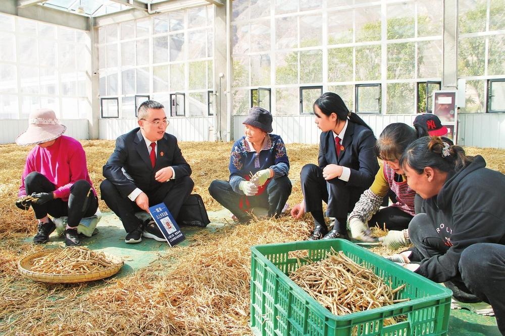 文縣法院安昌河法庭聚焦當(dāng)?shù)攸h參特色產(chǎn)業(yè),組織干警走進(jìn)企業(yè)開(kāi)展司法服務(wù)(2024年10月22日拍攝)。 文縣法院供圖