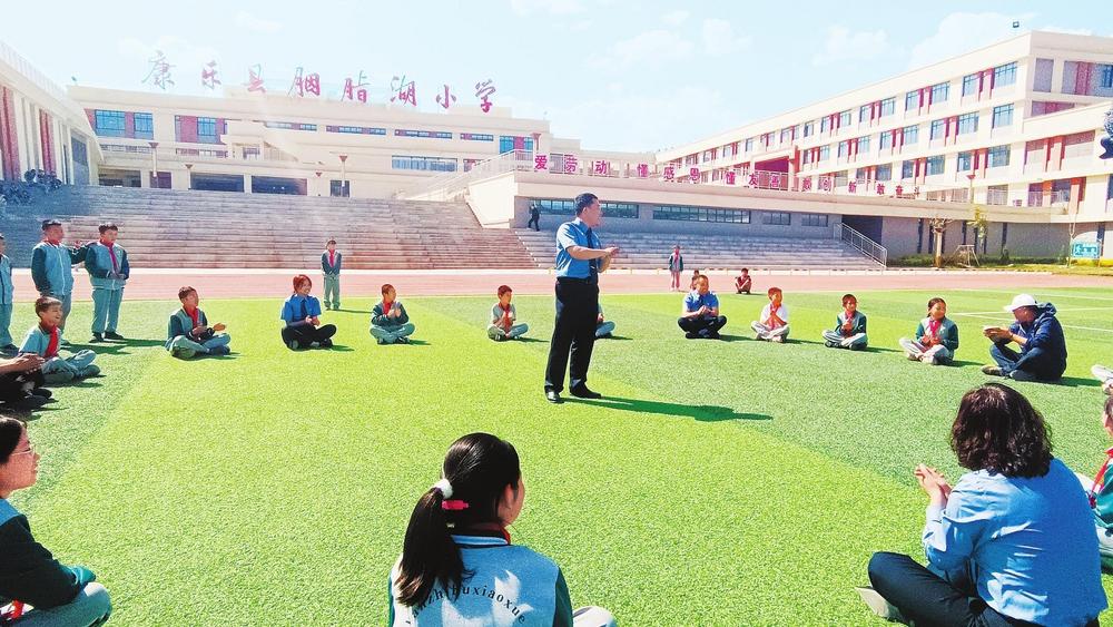 干警和孩子們游戲互動。近日,康樂縣檢察院組織干警走進康樂縣胭脂湖小學,開展法治進校園宣講活動,為未成年人健康成長構筑堅實司法屏障,用心用情守護“少年的你”。 新甘肅·甘肅法治報記者陳孝志攝