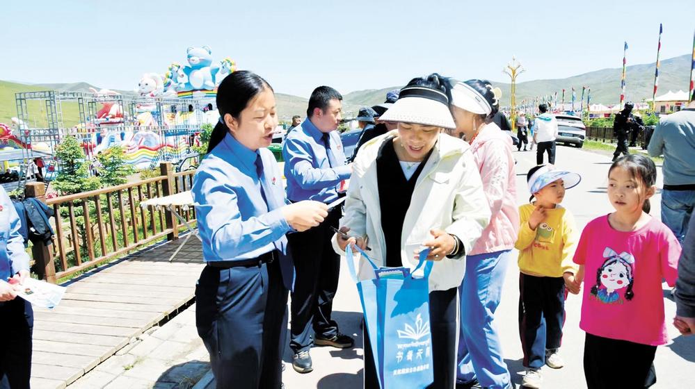 天??h檢察院檢察干警深入牧區(qū)宣傳“天祝白牦牛”品牌保護法律知識。