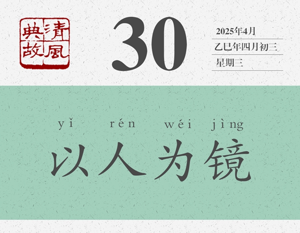墨子主張“非攻”,所以認(rèn)為好戰(zhàn)必?cái)?。墨子引用古語“以人為鏡”的意思是,智伯以強(qiáng)凌弱,以大欺小,最終引火燒身,身敗名裂,應(yīng)該成為“以攻戰(zhàn)為利”者的前車之鑒。后人則以“以人為鏡”為典,比喻可以從別人的成敗得失中吸取經(jīng)驗(yàn)教訓(xùn)?!杜f唐書·魏征傳》:“以銅為鏡,可以正衣冠;以古為鏡,可以知興替;以人為鏡,可以明得失。”