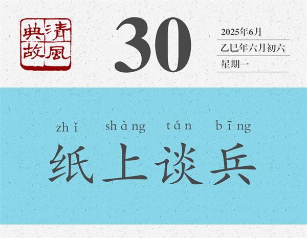 這就是歷史上著名的長平之戰(zhàn)。后人即根據(jù)趙括只會(huì)照搬兵書而不知變通之事,引申出“紙上談兵”之典,比喻只會(huì)紙上空談,而不能解決實(shí)際問題,或者只會(huì)空發(fā)議論,而得不到真正落實(shí)。清人張問陶詩《即事》:“紙上談兵壁上觀,立言先慮立功難。”