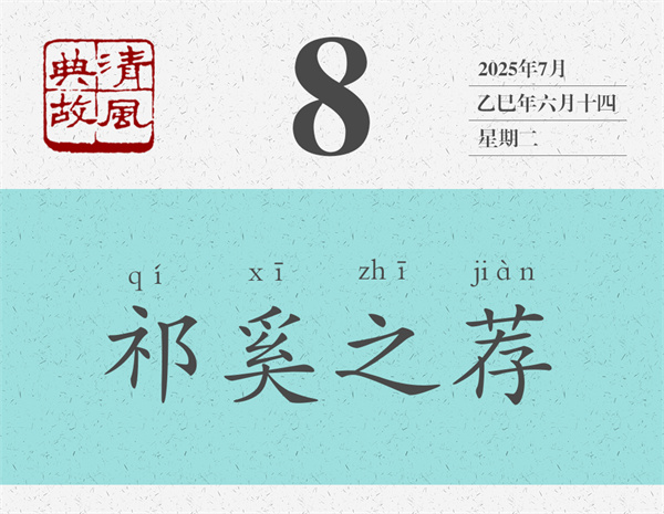 左丘明認(rèn)為,祁奚才是真正能舉薦賢能的人:“稱其仇,不為諂;立其子,不為比;舉其偏,不為黨。”意思是,祁奚推舉他的仇人,不是為了諂媚;推薦自己的兒子,不是出于偏愛(ài);推薦自己的下屬,不是為了結(jié)黨營(yíng)私。《呂氏春秋》稱:“外舉不避仇,內(nèi)舉不避子,祁黃羊可謂公矣。”后世即以“祁奚之薦”為典,形容舉薦人才心胸開(kāi)闊,公正無(wú)私。唐人姚元崇《答張九齡書(shū)》:“歷官三朝,年逾一紀(jì),凡所稱薦,罕避嫌疑,實(shí)有祁奚之舉。”