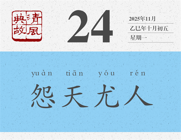 朱熹《論語(yǔ)集注》對(duì)“不怨天,不尤人”的理解要簡(jiǎn)潔得多,也深刻得多:“不得于天而不怨天,不合于人而不尤人。”《荀子·榮辱》則更進(jìn)一層:“自知者不怨人,知命者不怨天。”能夠看清自己的人就不會(huì)去埋怨別人,那么埋怨誰(shuí)呢,當(dāng)然是埋怨自己了;能夠知道自己命運(yùn)的人就不會(huì)怪罪于天,那么怪罪誰(shuí)呢,當(dāng)然是怪罪自己了。后世則反“不怨天,不尤人”之意,而以“怨天尤人”為典,形容遇到不稱心的事情,或者事情不順利的時(shí)候,一味埋怨天,一味責(zé)怪別人。言外之意,就是不從主觀上找原因,不在自己身上找問(wèn)題。宋人李昌齡《太上感應(yīng)篇》:“苛虐其下,恐嚇于他。怨天尤人,呵風(fēng)罵雨。”