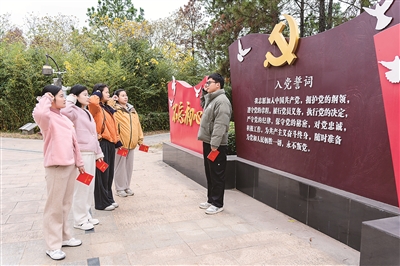 12月2日,江蘇省南京市溧水區(qū)紀委監(jiān)委組織部分青年黨員干部進行黨章學習。圖為青年黨員干部在重溫入黨誓詞。劉勝君 攝