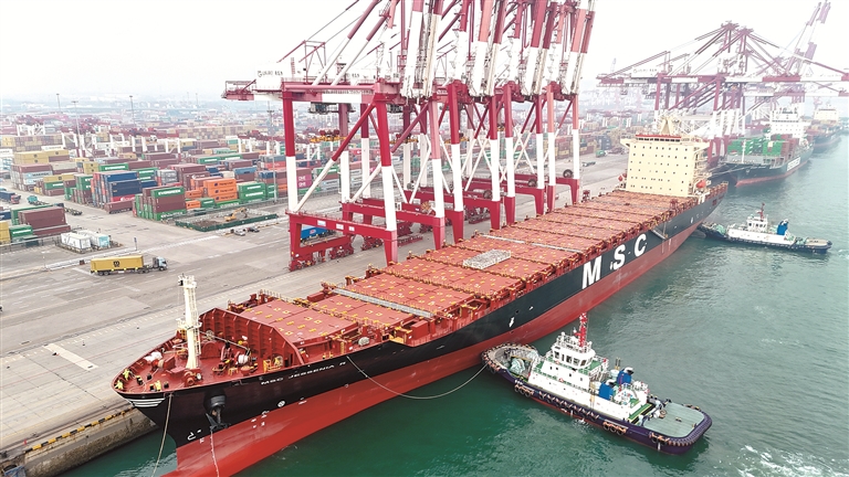 1月4日,澳洲直航新航線(xiàn)首班船舶靠泊山東港口青島港,標(biāo)志著該港2026年首條外貿(mào)新航線(xiàn)正式開(kāi)通。圖為澳洲直航新航線(xiàn)首班船舶——“地中海杰西尼亞”輪靠泊山東港口青島港。新華社發(fā)(張進(jìn)剛 攝)