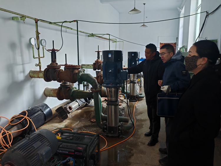 巡察組工作人員和縣供排水公司負責人到東河灘泵廠實地查看制水工藝、管網(wǎng)維護、安全生產(chǎn)情況。