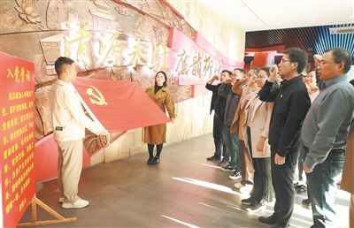 廣西壯族自治區(qū)柳城縣通過開展多種形式學(xué)習(xí)教育,推動(dòng)黨員、干部鑄牢對黨絕對忠誠政治品格。圖為該縣黨員干部到廉政教育基地開展主題黨日活動(dòng),重溫入黨誓詞。陳婕 攝