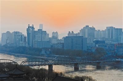 1月1日早晨的蘭州,百年中山橋巍峨矗立,水鳥翱翔在波光粼粼的黃河水面上,晨練的市民漫步黃河岸邊……