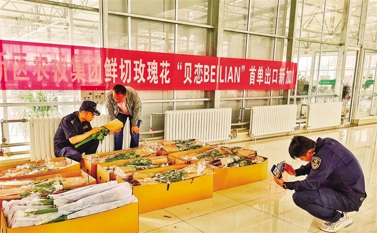海關工作人員檢驗檢疫新區(qū)鮮切玫瑰花 張建平 攝