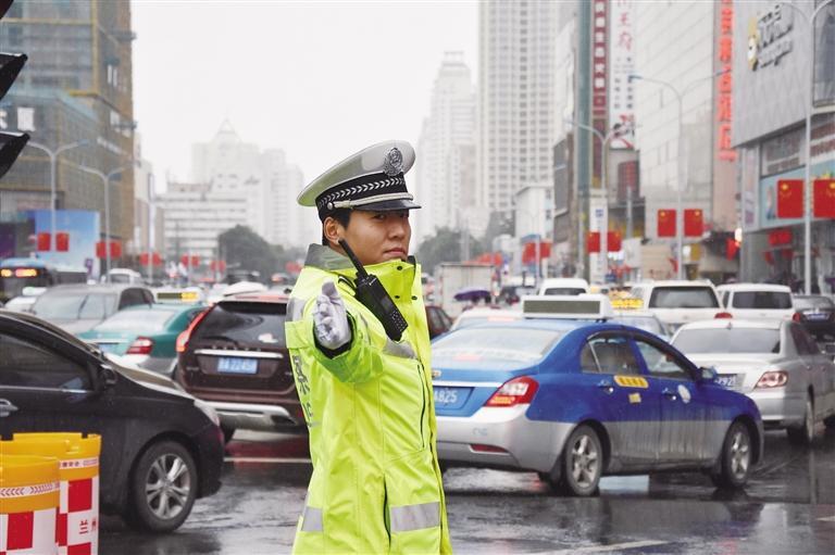 當(dāng)日城關(guān)交警大隊結(jié)合轄區(qū)各主要路段交通通行狀況,適時調(diào)整警力,采取固定執(zhí)勤和巡邏執(zhí)勤相結(jié)合的方式,加大路面巡查力度,在重點時段、重點路段增派警力和警車,提高見警率,及時對過往車輛進行疏導(dǎo),全力保障高峰時段和主要交通路口不發(fā)生交通擁堵。同時依托大隊指揮室智能交通管控平臺,加強視頻巡查,第一時間掌握路面情況,發(fā)現(xiàn)擁堵路段迅速指令路面警力開展疏堵保暢,有效保障了雨天道路交通安全暢通有序。