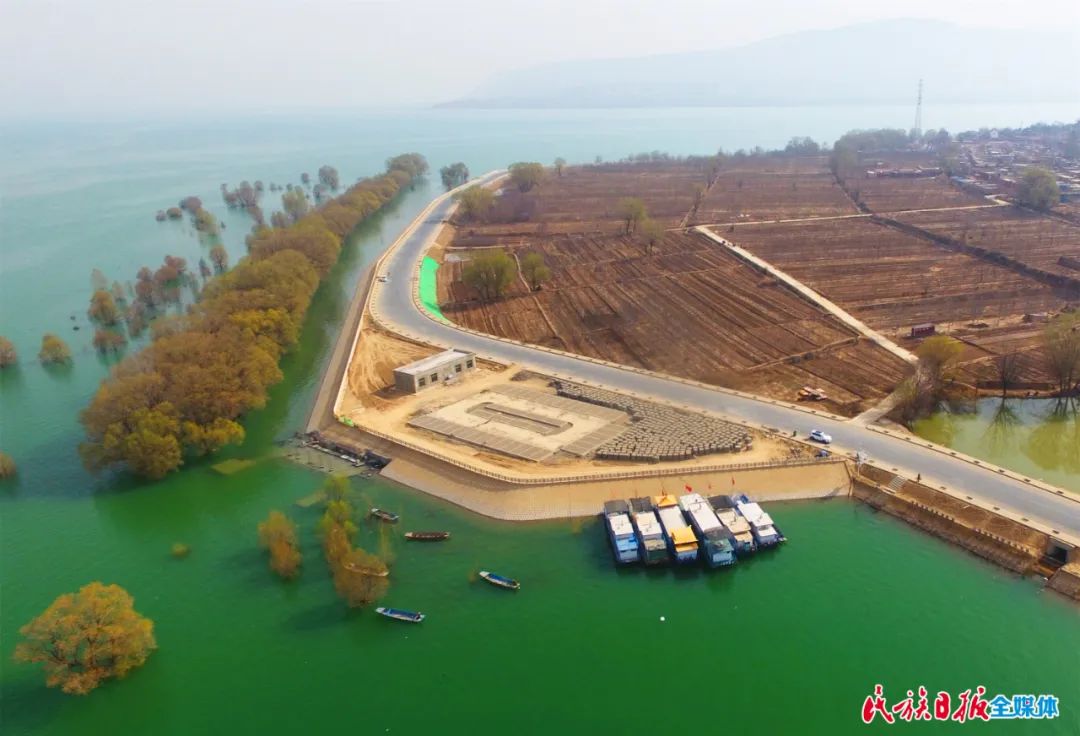 在岸邊,可以看到10公里的柳樹“站”在水中,根連著根,枝連著枝。這些高大的柳樹,不僅減緩了水面上襲來的風浪,形成第一道保護“堤壩”,還成為一道亮麗的風景線——倒映在湖面上的樹木婀娜多姿,鳥兒在樹杈上筑巢棲息,魚兒在樹下游玩,好一幅綿長的水鄉(xiāng)畫卷。