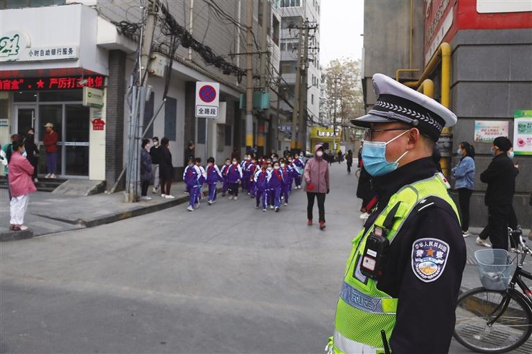 中國(guó)甘肅網(wǎng)4月12日訊 據(jù)蘭州日?qǐng)?bào)報(bào)道記者 葛 強(qiáng) 文/圖)隨著全市中小學(xué)返校復(fù)課,為給廣大師生營(yíng)造良好的道路交通環(huán)境,4月11日,蘭州市公安局各交警大隊(duì)結(jié)合轄區(qū)復(fù)課首日道路交通實(shí)際情況,全面啟動(dòng)護(hù)學(xué)崗,安排警力在學(xué)生上、下學(xué)期間加大校園及周邊道路交通疏導(dǎo)力度,切實(shí)筑牢校園周邊交通安全防線。