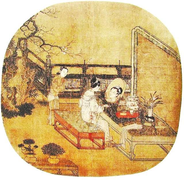 清代佚名畫(huà)家的《磨鏡圖》,右下角的工匠在磨鏡。