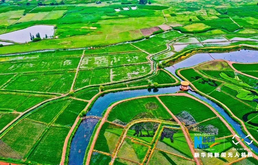 原標(biāo)題:【“飛閱”中國(guó)】甘肅張掖:稻田作畫(huà)“繪”風(fēng)景