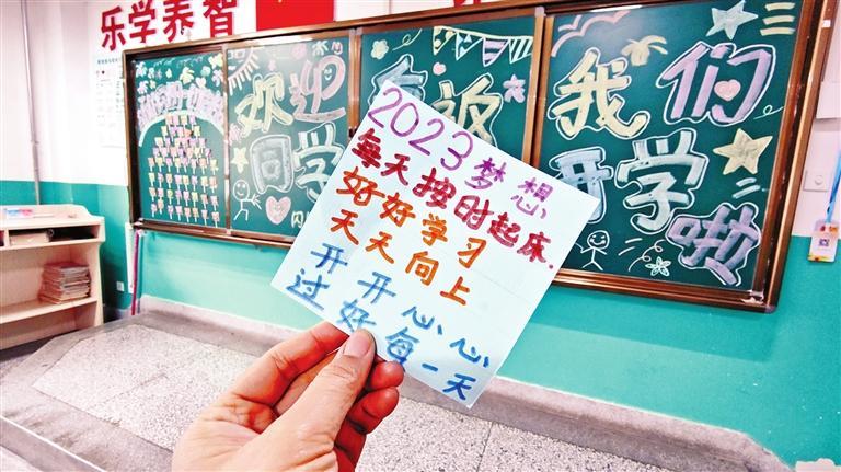 孩子們寫下新學期的期望。