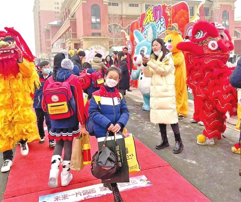 氣球、棒棒糖、筆記本……每一份開學小禮物都蘊藏著老師們深深的祝福和殷切的期望,打開這份開學禮,五彩斑斕的新學期已經畫下了濃墨重彩的第一筆。猜燈謎、寫春聯(lián)、做花燈、觀看太平鼓表演、舞獅子、趣味套圈、扭秧歌……多姿多彩的迎接活動,將傳統(tǒng)文化與有益的游戲結合起來,營造出愉悅的開學氛圍。