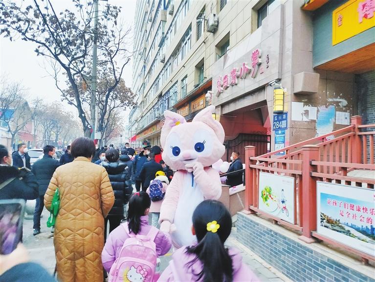 安西路小學,萌寵玩偶迎接學生們。