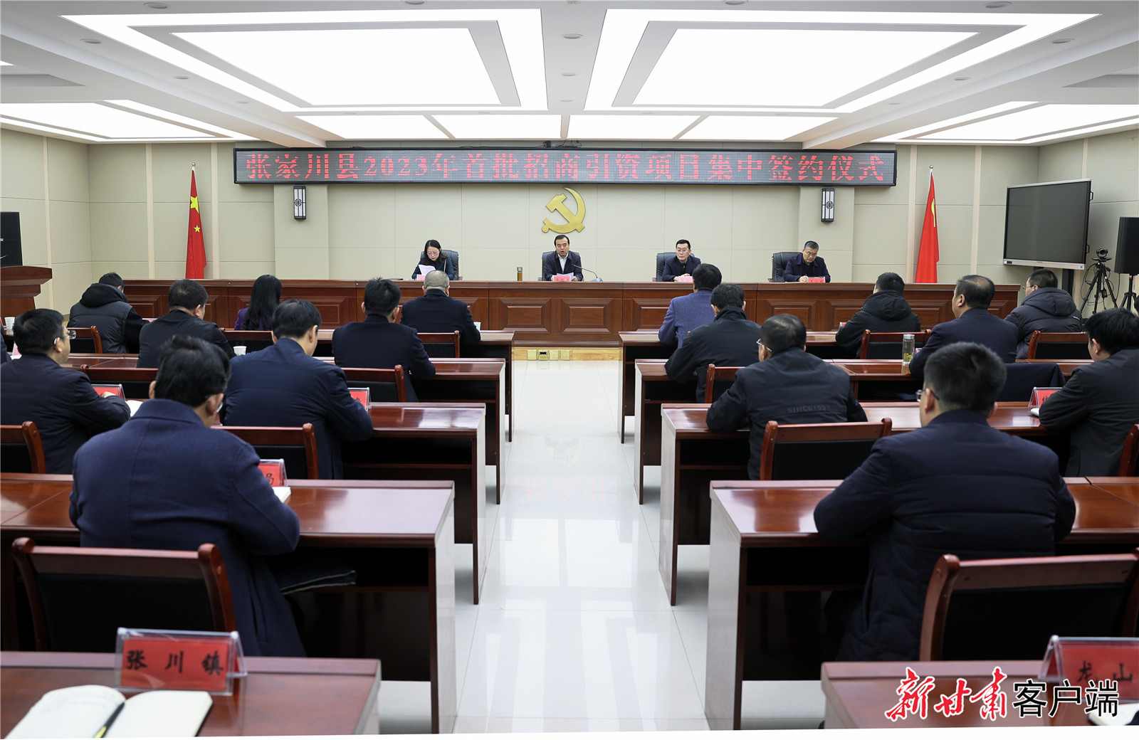 新甘肅客戶端張家川訊(新甘肅·甘肅日報(bào)記者 白永萍)合作奏響新序曲,攜手共啟新華章。近日,張家川縣舉行2023年首批招商引資項(xiàng)目集中簽約儀式,7個(gè)項(xiàng)目成功簽約,涉及新能源、制造業(yè)、商貿(mào)物流、文化旅游等6個(gè)產(chǎn)業(yè)領(lǐng)域,計(jì)劃總投資13.86億元。