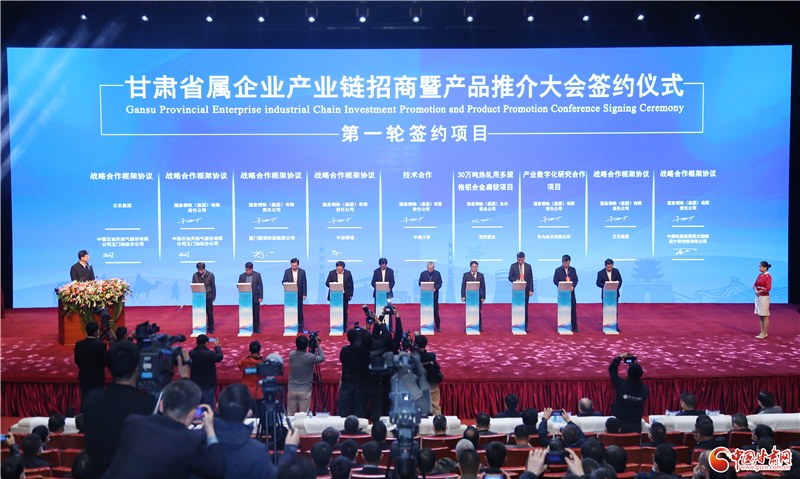 參會企業(yè)圍繞產(chǎn)業(yè)發(fā)展、產(chǎn)業(yè)鏈招商、技術創(chuàng)新、金融、工程、供應鏈、戰(zhàn)略合作等領域,共簽約產(chǎn)業(yè)鏈合作項目90個,總金額達到214.1億元。其中,省屬企業(yè)產(chǎn)業(yè)鏈招商暨產(chǎn)品推介大會簽約26個項目,總金額139億元;嘉峪關市、酒鋼集團產(chǎn)業(yè)鏈招商及產(chǎn)品推介會簽約64個項目,總金額75.1億元。