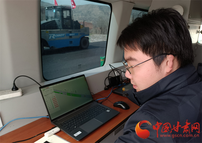 中國甘肅網(wǎng)4月6日訊(本網(wǎng)記者 宋芳科 實(shí)習(xí)生 王文博)“駕駛員可以休息一下,下面由無人駕駛集群智能化攤鋪路面。”4月6日上午,甘肅路橋安臨路面二標(biāo)項(xiàng)目瀝青路面鋪設(shè)現(xiàn)場,無人駕駛的鋪路機(jī)組成集群駛?cè)胧┕がF(xiàn)場,在無駕駛員操作的情況下智能前行,實(shí)現(xiàn)公路鋪設(shè)碾壓一體化成型,而指揮這些龐大工程車輛的僅僅是一名技術(shù)人員和一臺筆記本電腦,真正實(shí)現(xiàn)了路面鋪設(shè)智控化。