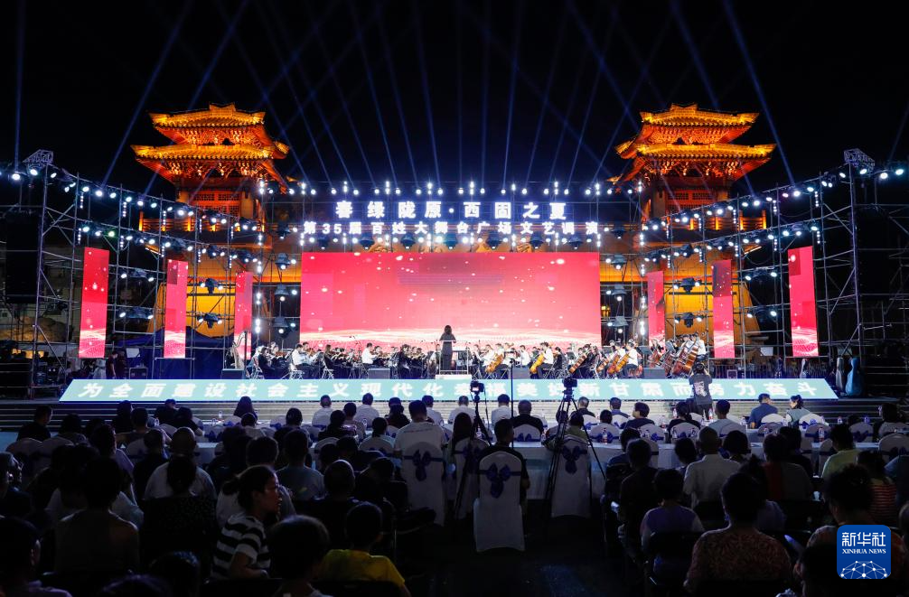 7月31日,觀眾在觀看第三十五屆“春綠隴原·西固之夏”百姓大舞臺廣場文藝調演。新華社記者 方欣 攝