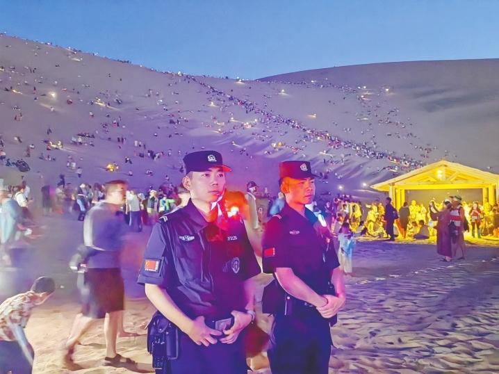 為了打造“安全游”環(huán)境,讓游客“放心游”,敦煌市公安局在各景區(qū)的關(guān)鍵點(diǎn)位,安排30余名增援警力加密巡邏頻次,擴(kuò)大巡邏范圍,全力維護(hù)景區(qū)秩序,織密治安“防控網(wǎng)”,筑牢平安“防火墻”,有效提高見(jiàn)警率、管事率,提升警務(wù)服務(wù)保障水平。
