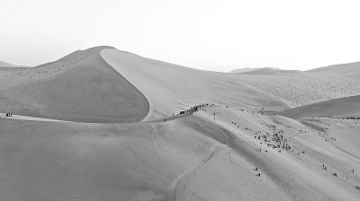 8月6日,游客在甘肅省敦煌市陽(yáng)關(guān)景區(qū)游覽。新華社發(fā)