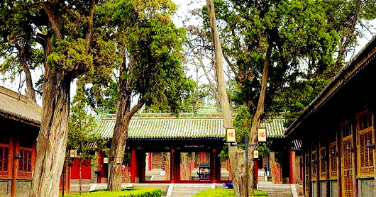 許多游客初來(lái)伏羲廟,對(duì)這里高大參天的千年古樹(shù)尤為喜愛(ài)。古柏蒼槐,叢郁繁茂,密嚴(yán)森列,為隴上之奇觀。宮門(mén)東的“龍槐”,為唐代所植。歷經(jīng)千年風(fēng)雨滄桑,樹(shù)干已空朽,而殘軀斷皮上又長(zhǎng)出新枝,老樹(shù)換新顏,生機(jī)勃勃。