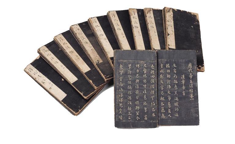 淳化閣帖是北宋王朝編印的我國(guó)歷史上第一部大型書(shū)藝法帖,集宋朝以前書(shū)法藝術(shù)之大成,印數(shù)不多且刻版毀于火,流傳帖本量少,十分珍貴。明王朝建立之后,朱元璋賜其第14子朱楧一部宋初拓印本淳化閣帖。肅王府一直視此帖為傳代之寶,秘不示人。