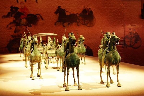 西漢時,為了抵御匈奴入侵,鞏固疆土和國家政權(quán)安全,發(fā)展壯大軍事力量,漢王朝在隴右、河西一帶擴展牧區(qū),從西域引入寶馬良駒,繁衍馴養(yǎng),使牧場養(yǎng)馬達到前所未有的鼎盛時期。