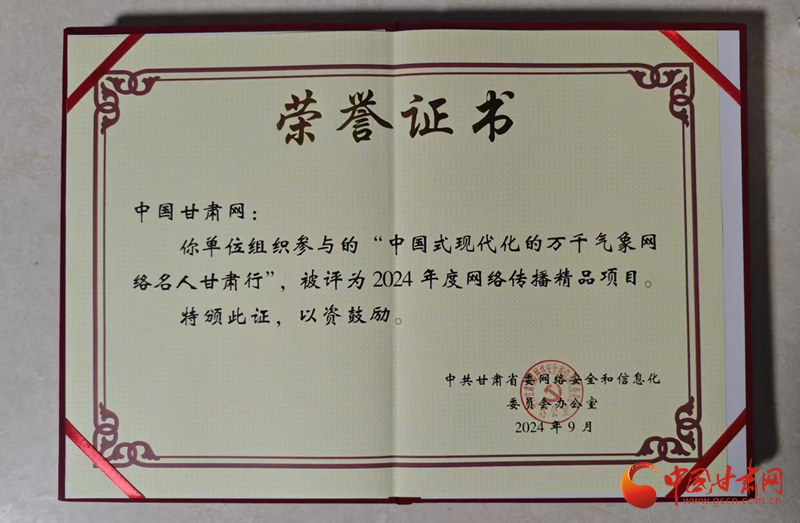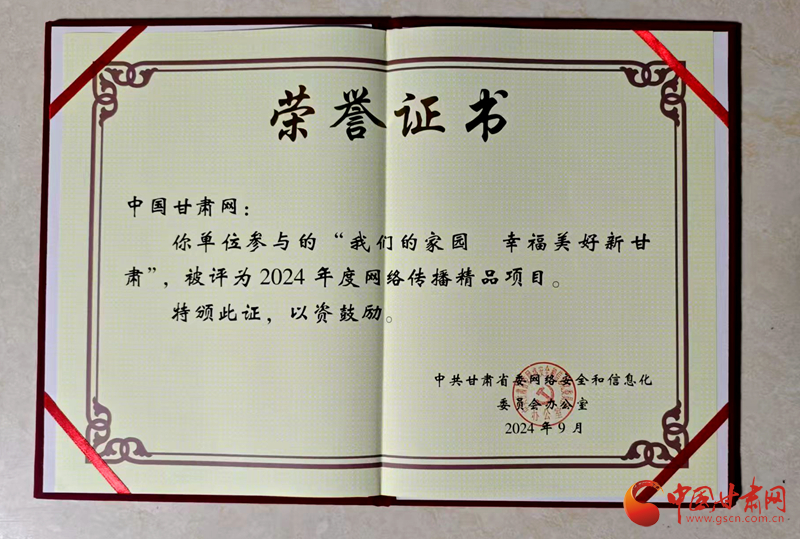 同時(shí),中國甘肅網(wǎng)參與的“我們的家園幸福美好新甘肅”和“中國式現(xiàn)代化的萬千氣象網(wǎng)絡(luò)名人甘肅行”兩個(gè)項(xiàng)目被評(píng)為2024年度網(wǎng)絡(luò)傳播精品項(xiàng)目。