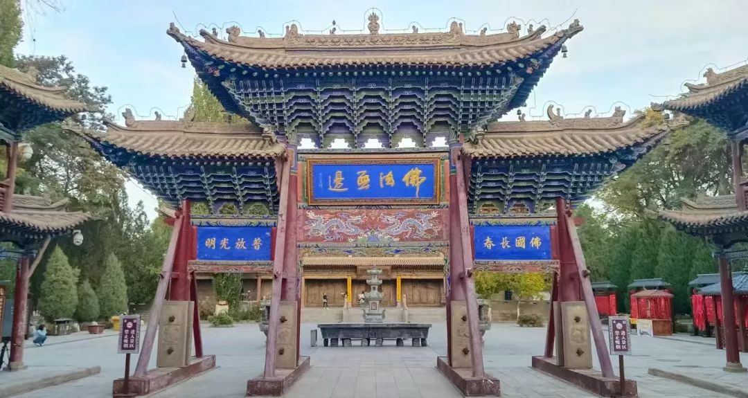 17日下午,當采訪團大巴車在夕陽余暉的照射下,風馳電掣般駛入張掖大佛寺停車場緩緩停穩(wěn)后,我們見到了多次對接的采訪團成員。因為行程緊張,大家中午在武威午餐后,沒有休息,乘車近4個小時,風塵仆仆來到了張掖,就是想目睹這座始建于西夏崇宗永安元年,供奉著全亞洲最大室內木胎泥塑臥佛的皇家寺院。