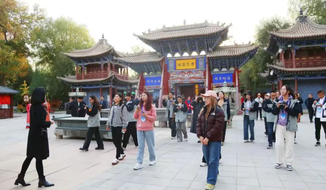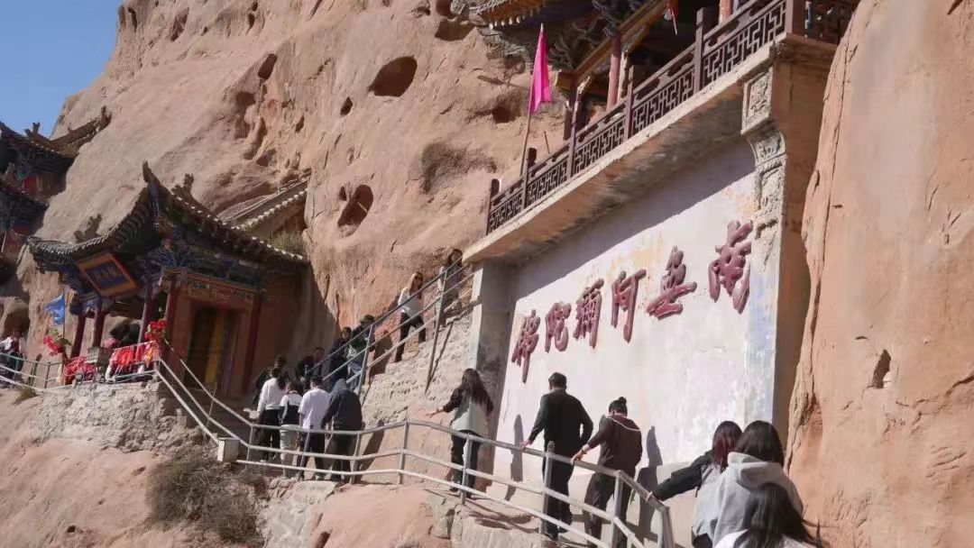 18日上午,迎著耀眼的晨光,采訪團成員乘坐大巴車來到了集自然風光、石窟藝術、民族風情、宗教文化于一體的肅南馬蹄寺。馬蹄寺是河西走廊著名的佛教勝地,石窟群開鑿于十六國北涼時期,距今約1600年的歷史,是絲綢之路上至關重要的歷史文化瑰寶,也是我國早期石窟的杰出代表。秋日的馬蹄寺,秋高氣爽,景色宜人,遠遠看去,紅綠相間,層林盡染,大家行走在落葉飄零的山間小路上,對這座建在懸崖峭壁之上、將棧道鑲嵌在山體之內的石窟充滿了好奇。