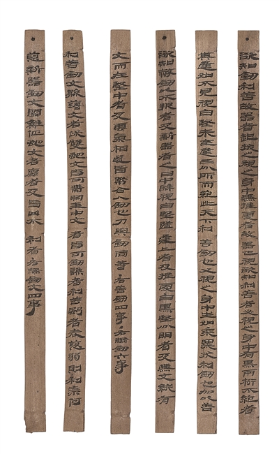 《相利善弊劍冊》(見圖)出土于甲渠候官遺址內(nèi),共6簡,約210字,規(guī)整隸書,墨色如新。該簡提出了古人辨識寶劍的一些方法和標準,對研究漢代的金屬冶煉和兵器制造具有重要意義。